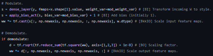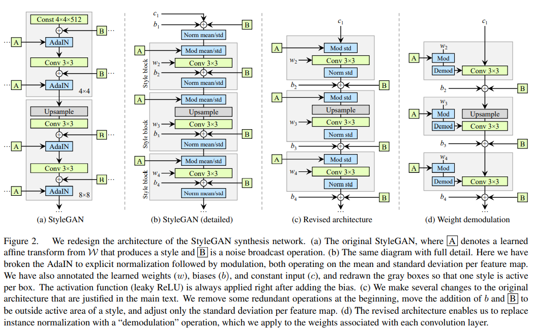 - Conv layer의 weight에 직접 style add와 normalization을 적용 (Figure 2.(d))