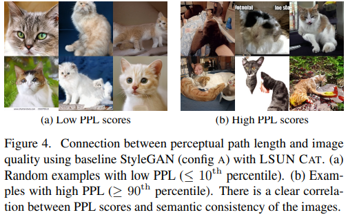 - Perceptual Path Length (PPL)은 latent space와 출력 이미지의 mapping의 부드러운 정도를 정량화하기 위해 도입.