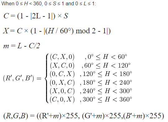 다음은 HSL과 RGB 간 변환의 예시입니다.